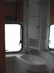 getanktes Fahrzeug, eine volle Gasflasche, Küche inkl. Kühlschrank, Spülbecken und Gasherd, Gasheizung, Umluftheizung, Nasszelle mit Toilette und Dusche, Frisch- Abwassertank, Ausstellfenster mit Fliegengitter und